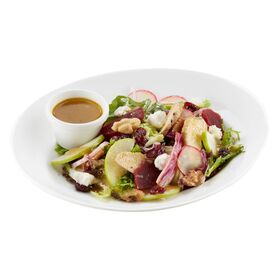 Grilled Chicken, Goat's Cheese, Beetroot, Green Apple, Dried Cranberr y, Walnut, Red Onion, Mixed Lettuce, Citrus Dressing