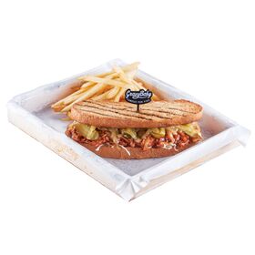 Juicy Roast Chicken in a Smoky BBQ Sauce, Topped with Jalapeños and Melted Cheese. Served in Toasted Granary.